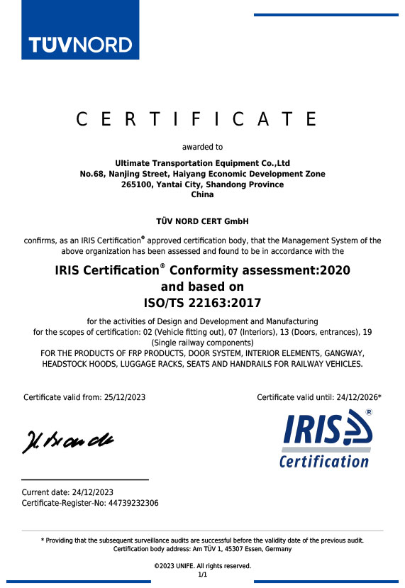 ISO TS22163:2017质量体系证书